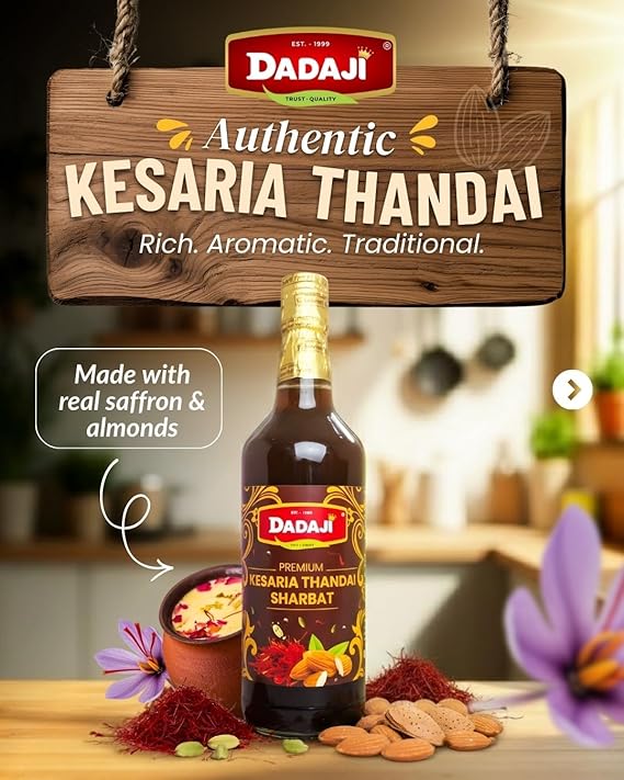 Dadaji Premium Kesaria Thandai Syrup | 250ml | Made with Real Saffron & Almonds | Authentic Holi Thandai Drink
